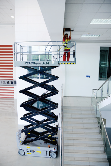 -4047 自行式剪型高空作业平台在狭小的空间内也有极强的操纵性,全高度驱动,大大提升了高空作业的工作效率